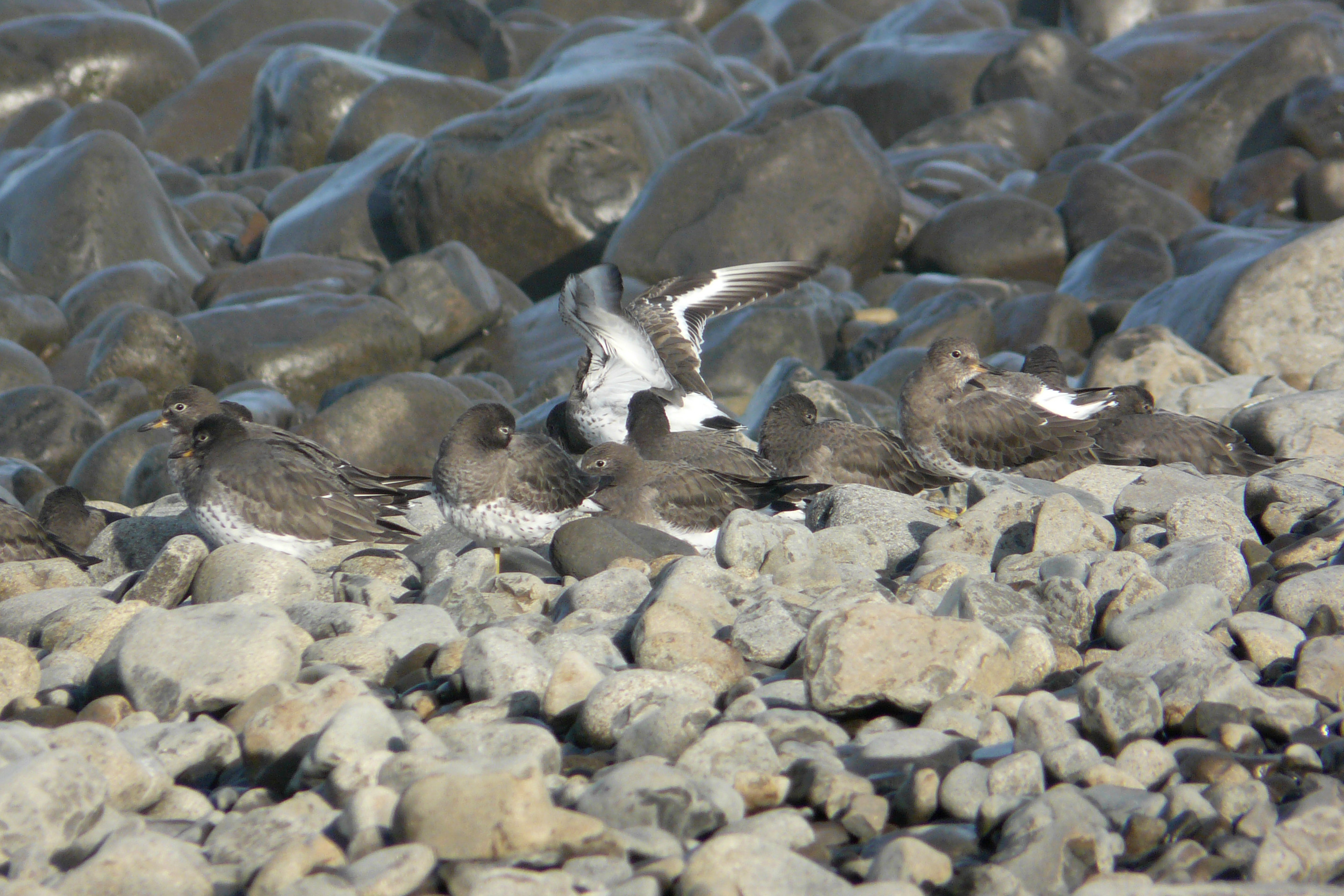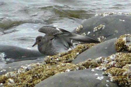 Surfbirds blend in with the rocks very well until someone opens their wings.