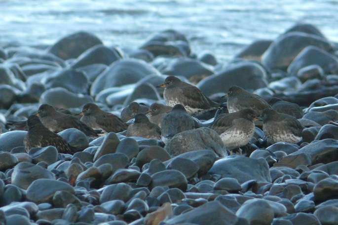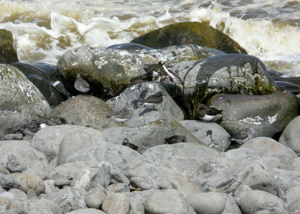 Black Turnstones and Surfbirds at The Cove in Seaside (Birding Oregon p. 121) These birds put on a great show for my shorebird class.
