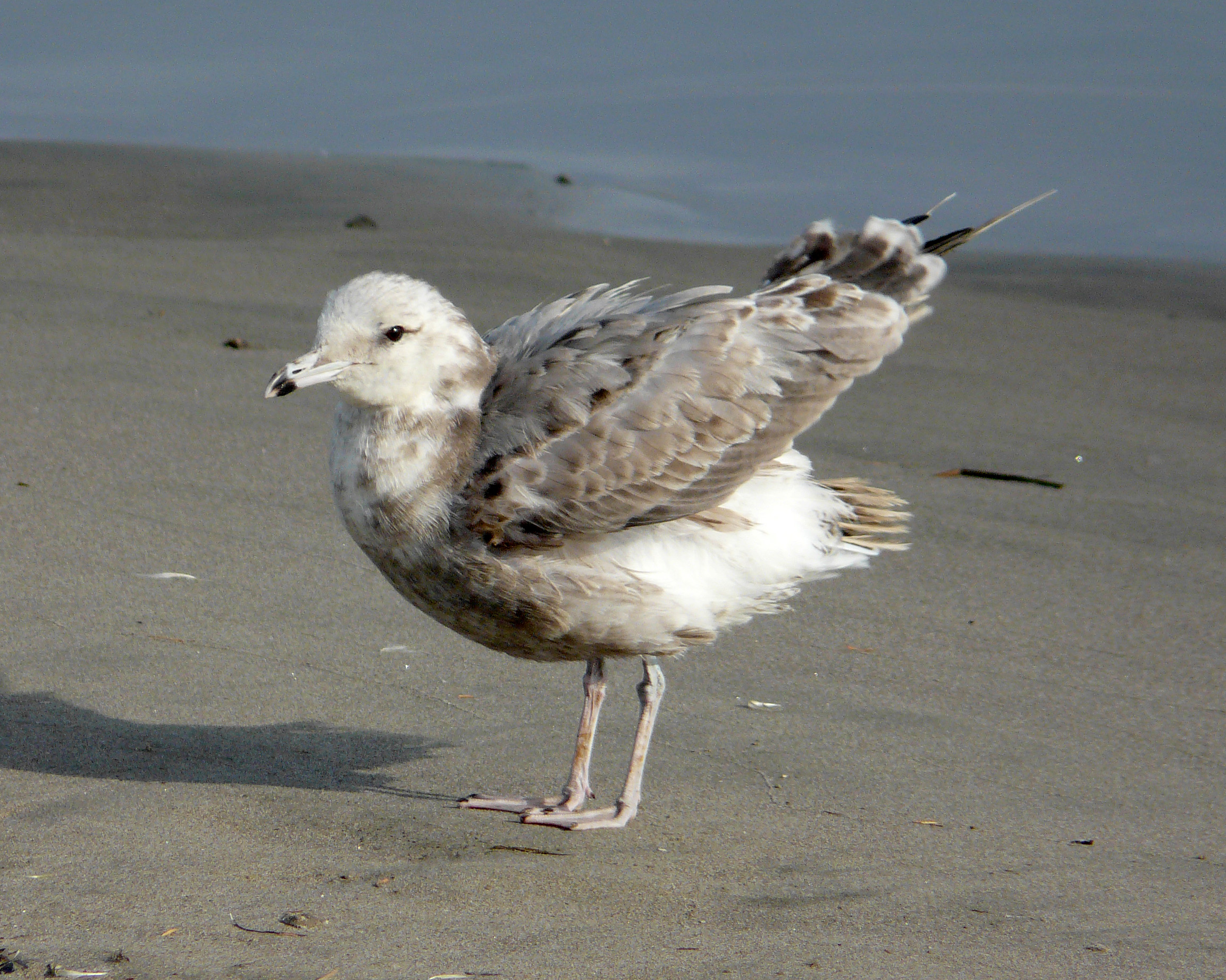 California Gull in extremely worn plumage. Notice how the primaries have worn down almost to the shaft.