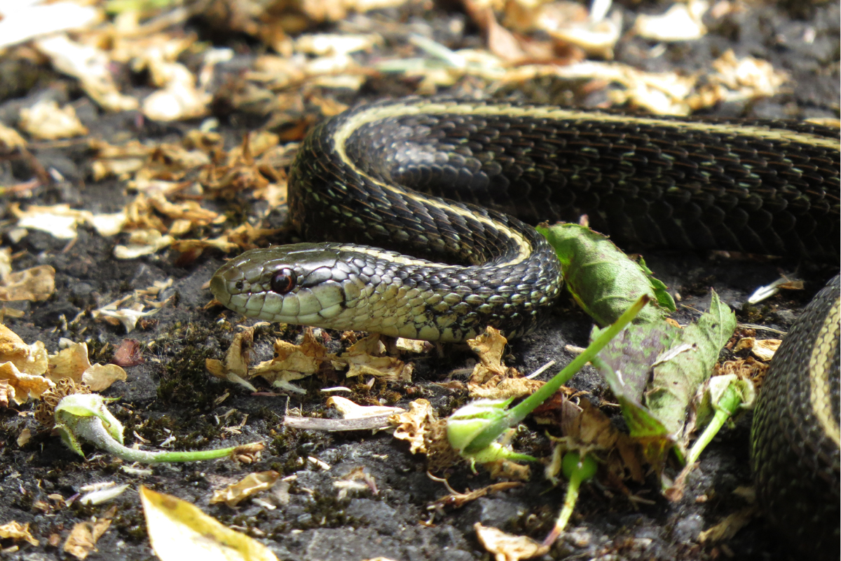 Northwestern Garter Snakes were also enjoying the sun. Northwestern Garters are distinguished from Common Garters by their smaller head and gentler disposition.
