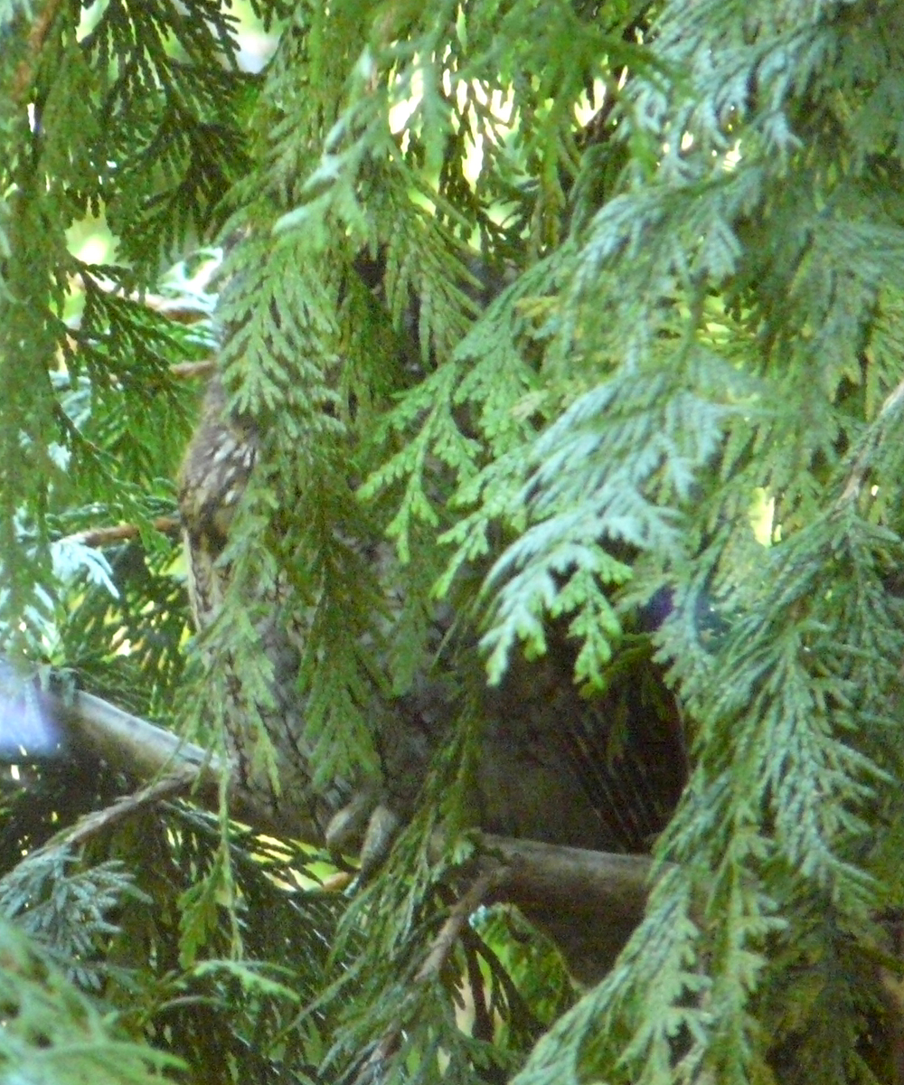 On the home front, we were treated to three baby Western Screech-Owls playing in the back yard. Two of them perched on the rope holding the sunshade and tried to untie the knots. It was almost too dark to see, so this is the best image I was able to get (6400 ISO). Pretty adorable.
