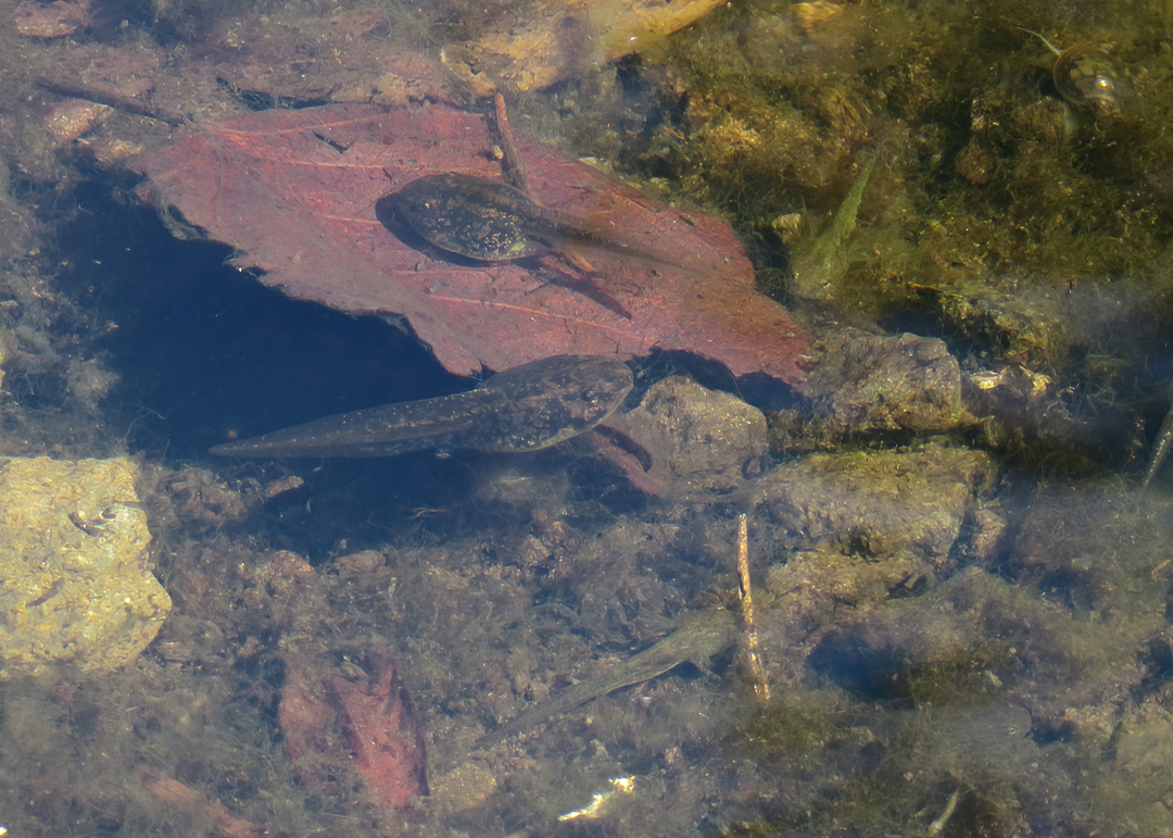 Green Heron with an American Bullfrog tadpole. It is nice when the native species eat the invasive ones. It is often the other way around.